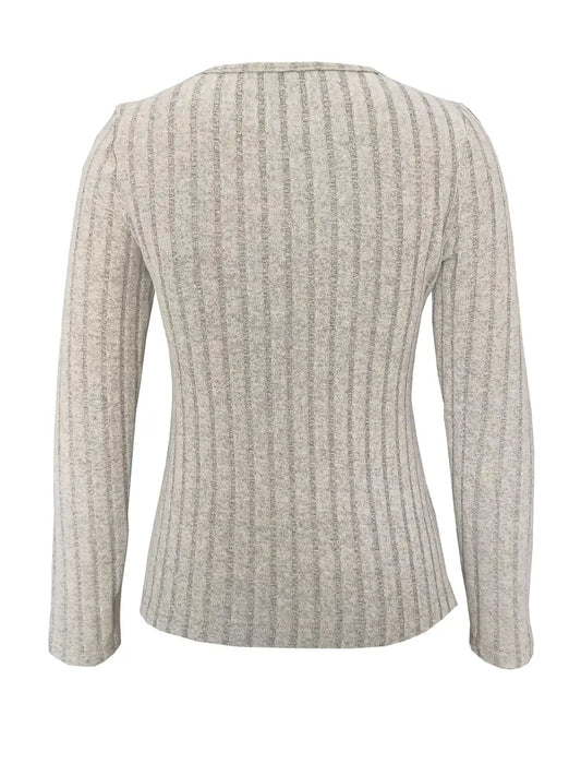 Emily – geripptes t-shirt mit gedrehter vorderseite und v-ausschnitt