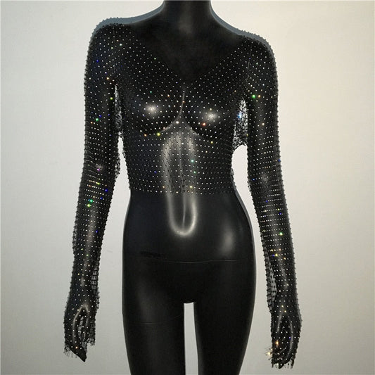 Emmas Verführerisches Netzoberteil | Langarm Beach Cover Up | Party Club Tank Top mit sexy Mesh-Look