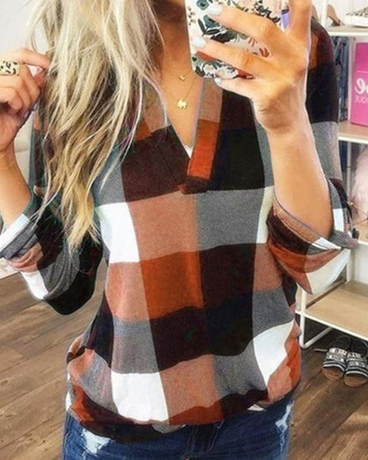 Even&Vil® - Auffällig kariertes langärmeliges Top