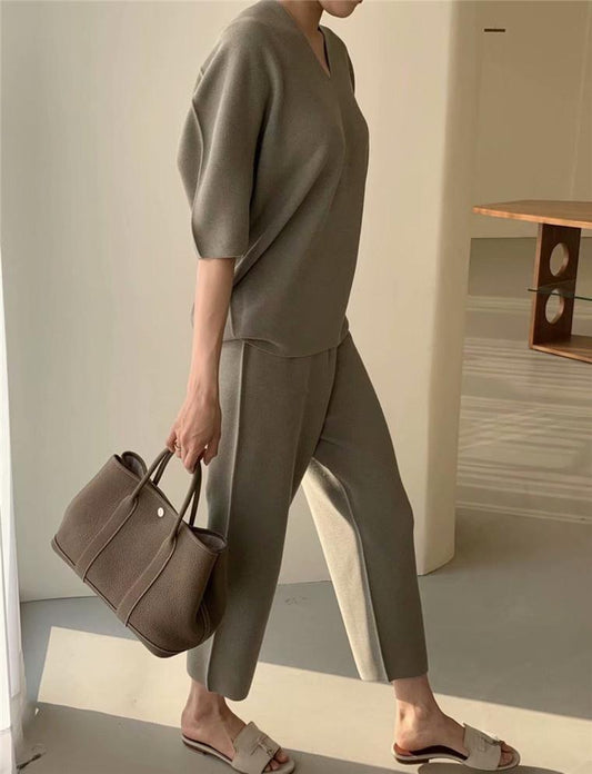 Carl&Coni® - Comfy Elegance Set aus Oberteil mit V-Ausschnitt und knöchellanger Hose