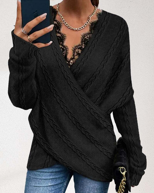 Oberteil aus Spitze mit Kreuzstich und V-Ausschnitt