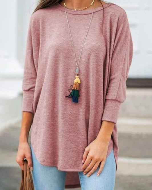 Einfarbiges Oberteil mit hohlen 3/4-Ärmeln