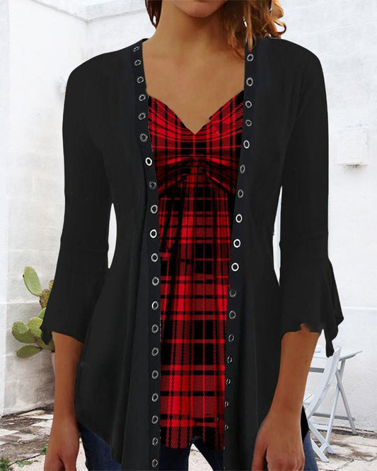 Oberteil mit V-Ausschnitt und ausgestellten Ärmeln