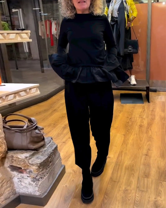 Zwanglos Einfarbige Bluse mit Rüschenärmeln