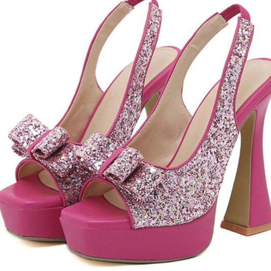 BowknotGlam - Paillettenbesetzte Stoff High Heels