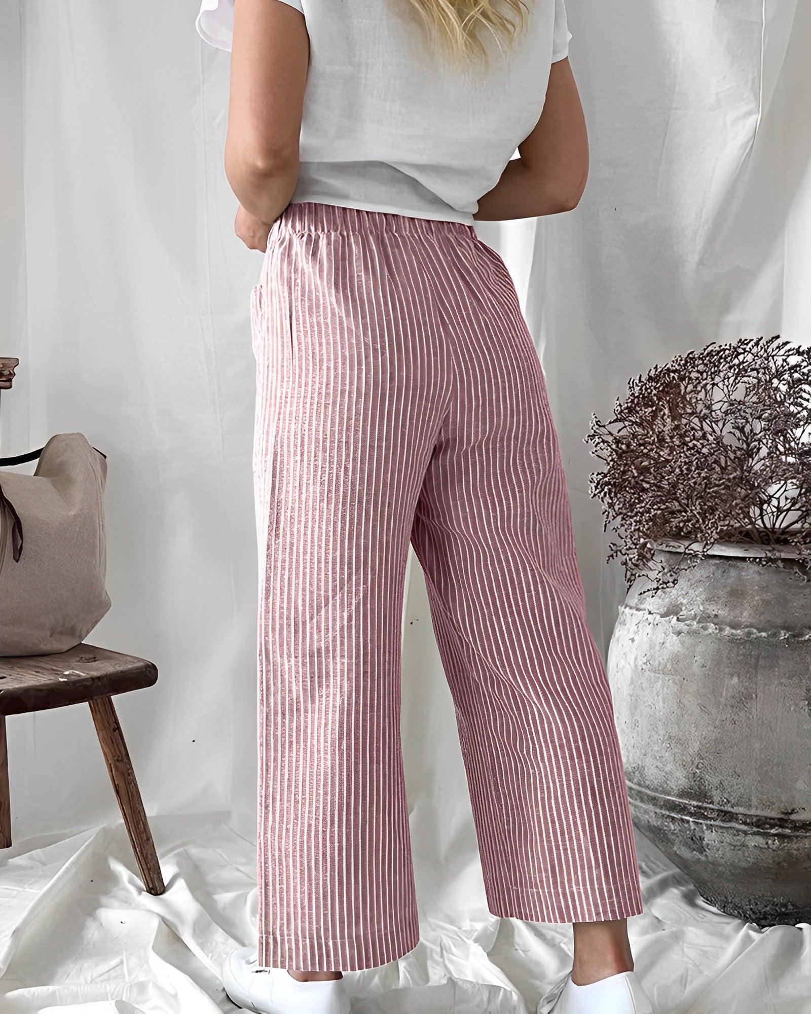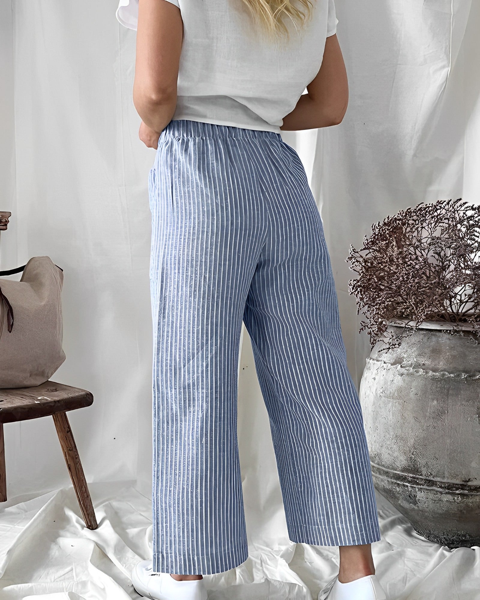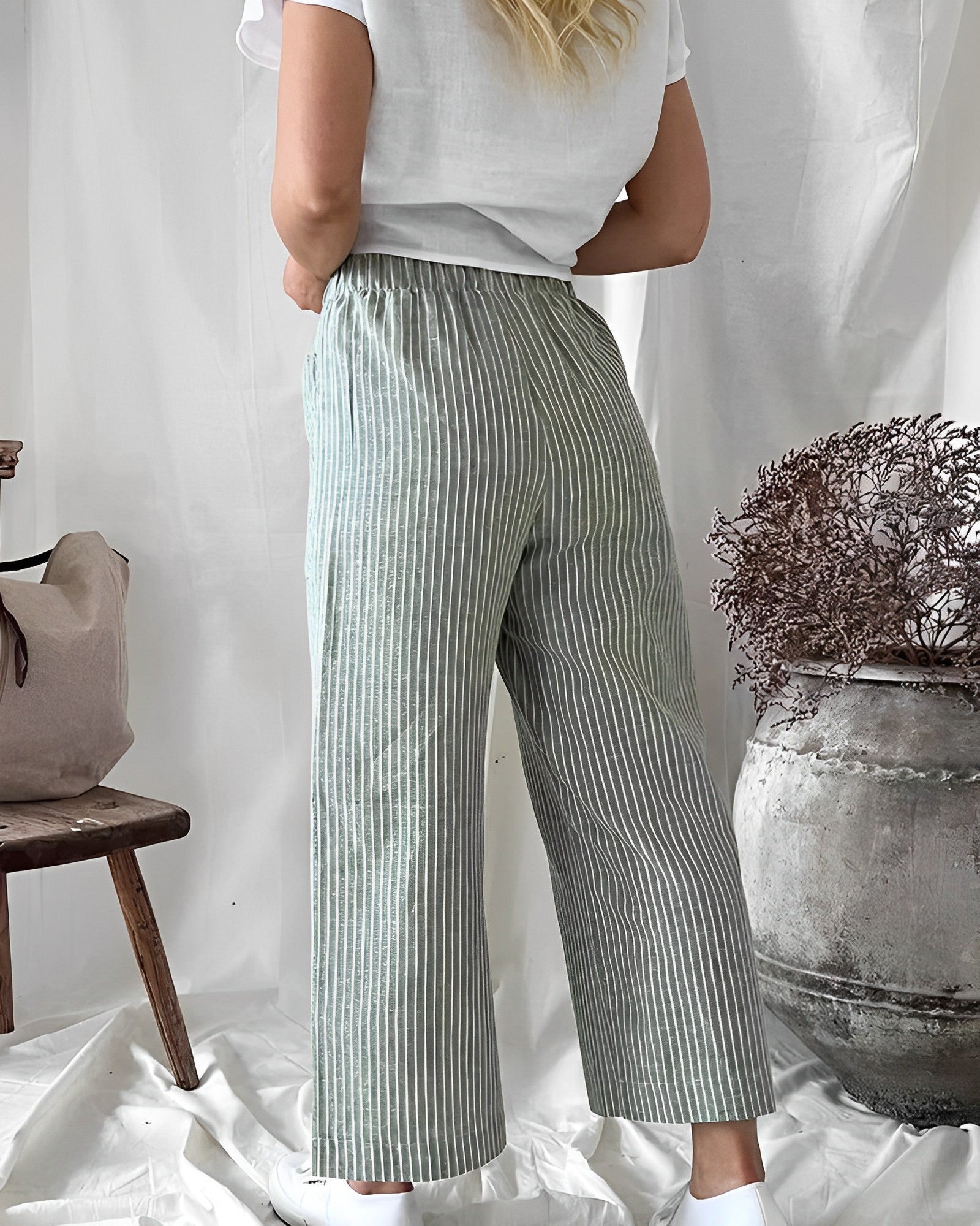 Clea bietet eine Hose aus weichem Stoff mit Streifen, die Komfort und modernen Stil vereint. Die aus einem luxuriösen Stoff gefertigte Hose mit dezenten Streifen ist ein vielseitiger Begleiter für verschiedene Anlässe. Mit ihrer entspannten, aber raffinierten Silhouette und der maßgeschneiderten Passform kombiniert Clea entspannten Komfort mit raffiniertem Stil. Ob für das Büro oder einen legeren Ausflug, diese Hose passt sich mühelos an verschiedene Looks an. Praktische Elemente wie ein bequemer Bund und sorgfältige Nähte unterstreichen die Attraktivität der Hose. Mit Clea werten Sie Ihre Alltagsgarderobe auf. Sie ist die perfekte Wahl für alle, die Wert auf Stil und Bequemlichkeit in der modernen Mode legen.