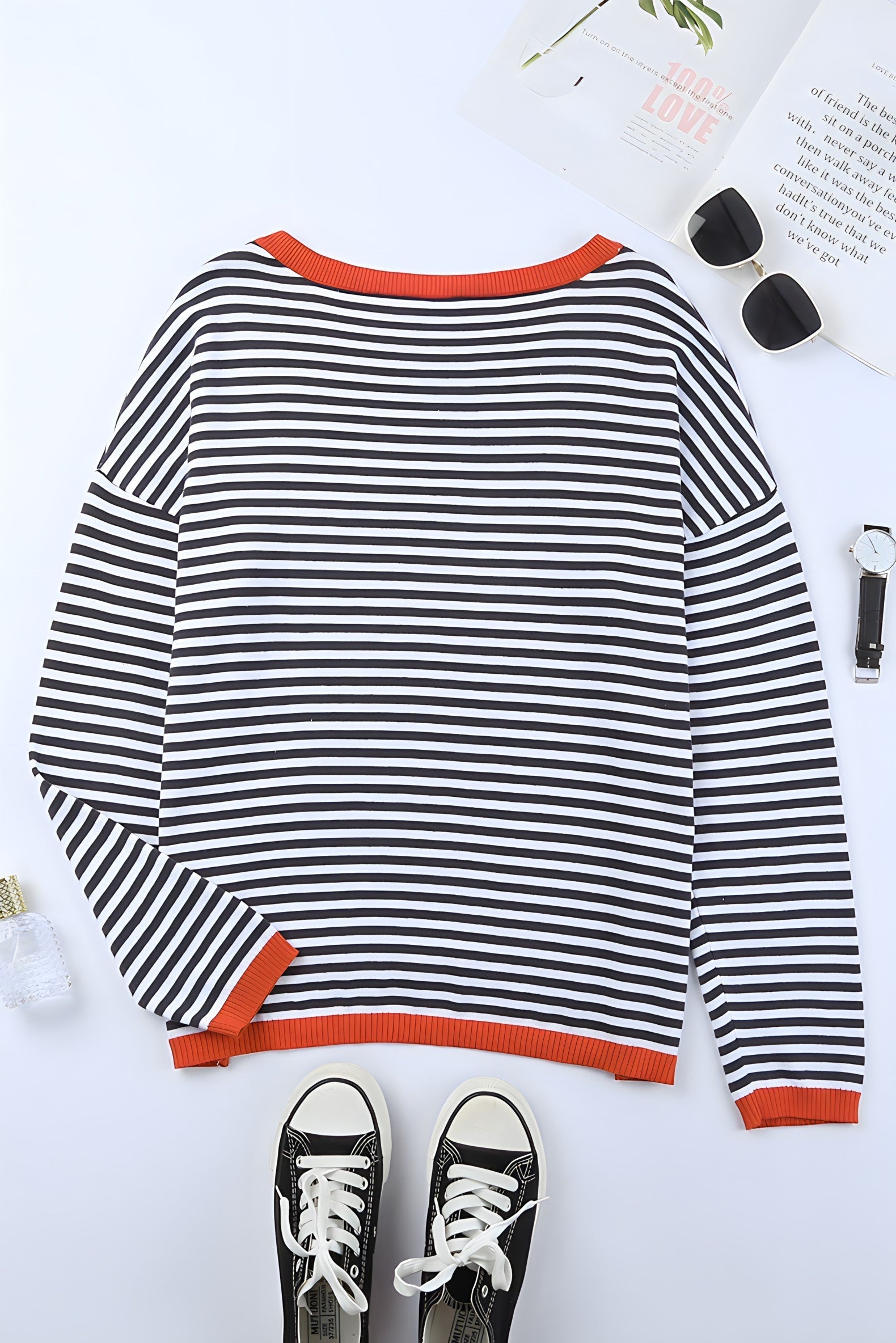 Auffallende Kontraste – Die markanten Bündchen setzen stilvolle Akzente und verleihen dem Pullover das gewisse Etwas.