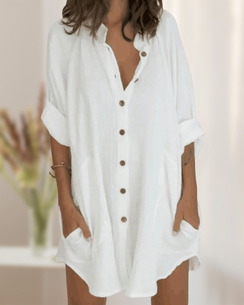 Komfort den Ganzen Tag: Aus einer Baumwollmischung gefertigt, bietet das lockere Hemdkleid den Komfort, den Sie für hektische Tage benötigen. Es ist das ideale Kleid für jede Frau, die Komfort mit Stil verbinden möchte.