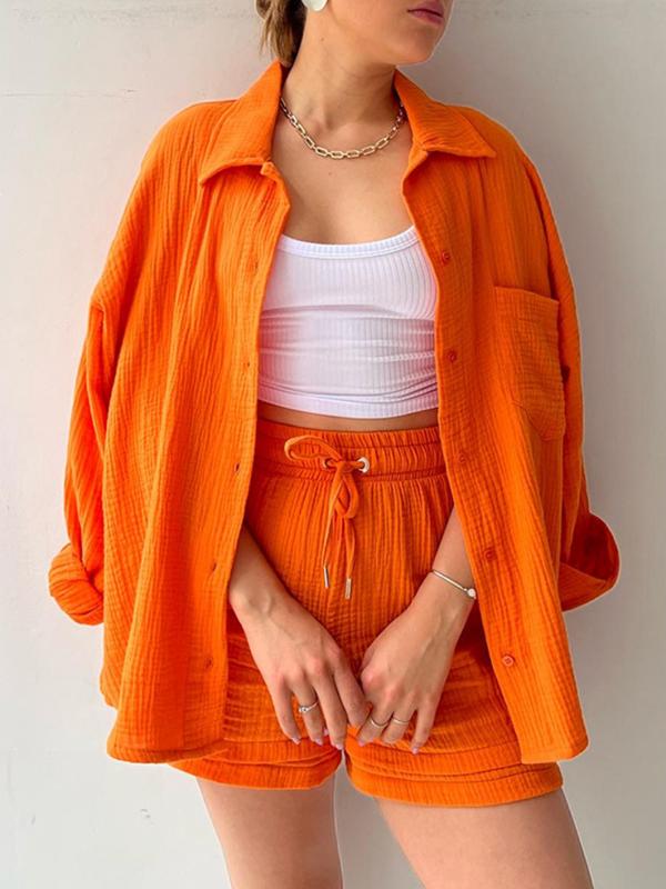 Entspannter Chic mit einem Hauch von Raffinesse: Das weiche, luftige Material schenkt Ihnen ein Gefühl von Freiheit und Komfort, während der klare Schnitt und der lässige Kragen des Hemdes eine klassische Note in das Gesamtbild einbringen. Die harmonische Verbindung von Design und Farbe macht dieses Set zu einem unverzichtbaren Bestandteil für jede Gelegenheit, von einem entspannten Tag im Park bis zu einem ungezwungenen Treffen mit Freunden.