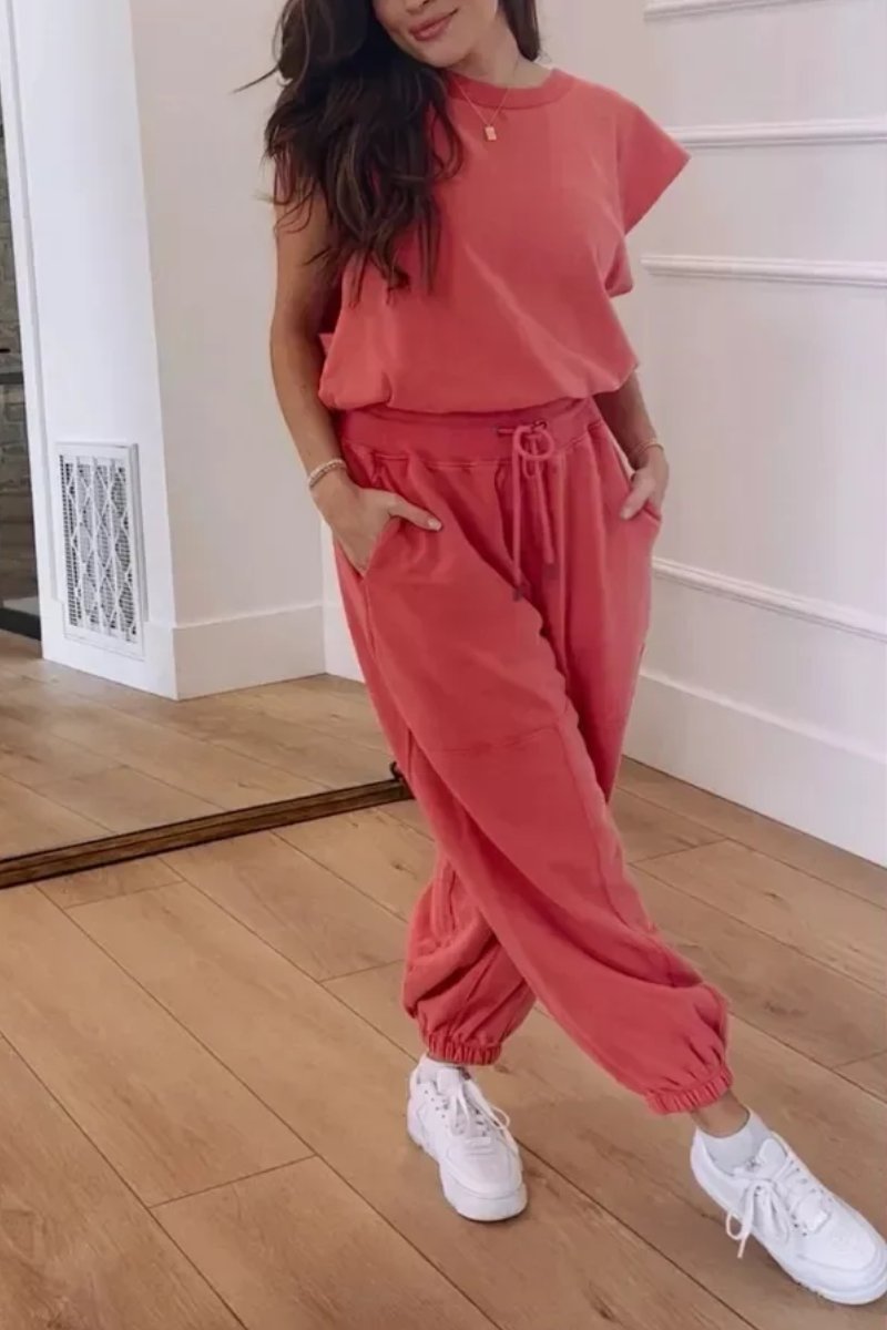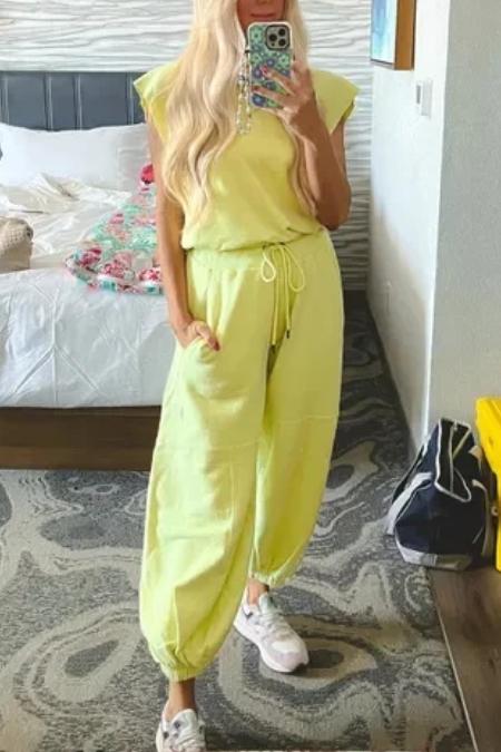Ungezwungener Chic. Der Luna - Beige Freizeit-Overall verbindet Lässigkeit mit stilvoller Nonchalance. Der ärmellose Schnitt und das weite Bein schaffen ein Gefühl von Freiheit und Leichtigkeit. Der zarte Beigeton steht für natürliche Eleganz und Vielseitigkeit.