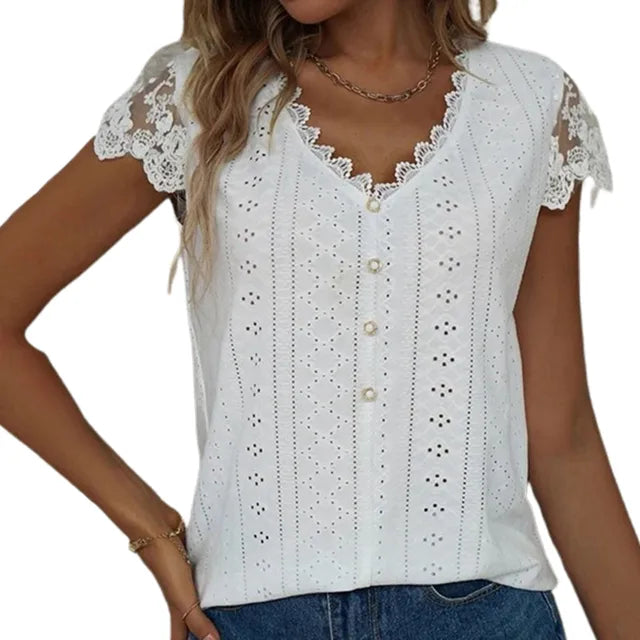 Sommerlicher Flair: Die detailreiche Lochstickerei sorgt für einen Hauch von Verspieltheit, während die luftige Passform perfekt für wärmere Tage ist.