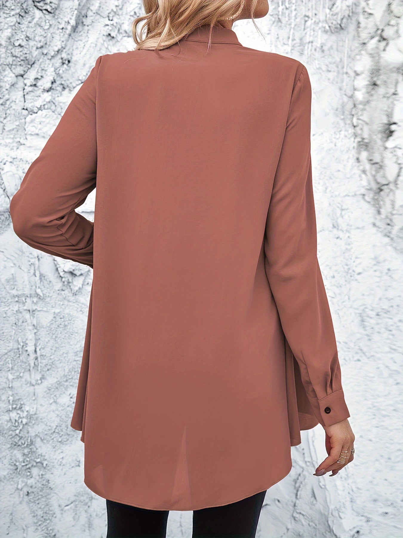 Vielseitig und zeitlos: Das schlichte, aber dennoch elegante Design dieses schokoladenbraunen Hemdes macht es zu einem vielseitigen Kleidungsstück, das sich leicht mit verschiedenen Unterteilen kombinieren lässt.
