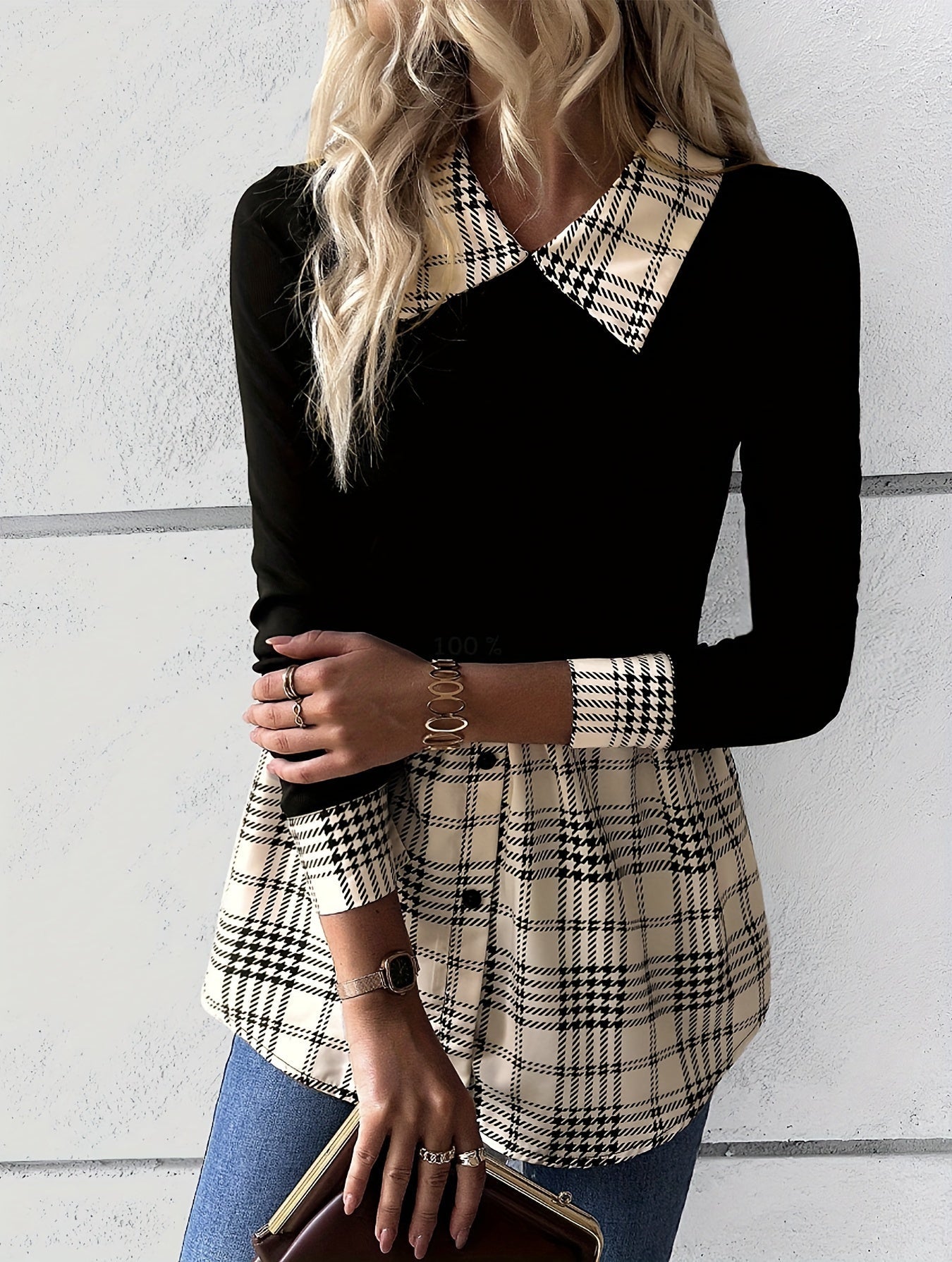Vielseitig und stilvoll: Das raffinierte Design dieses schwarz-karierten Hemdes macht es zu einem vielseitigen Kleidungsstück, das sich leicht mit verschiedenen Unterteilen kombinieren lässt.