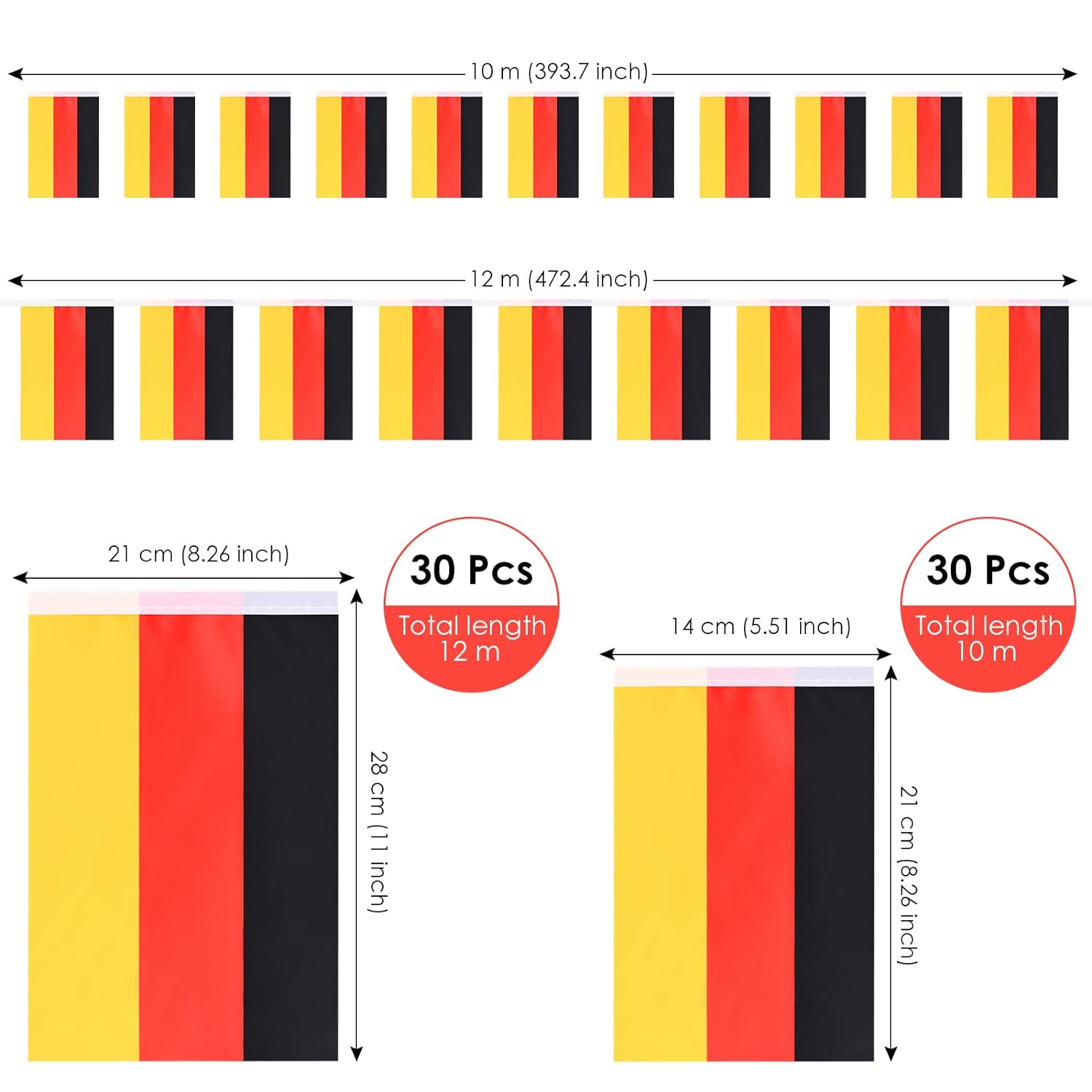 - Paket und Größe: Das Paket enthält 1, 2, 4 Stück Deutschland-Wimpel mit einer Größe von ca. 14 x 21 cm - 10 m / 5,5 x 8,7 Zoll - 32,8 Fuß und 20 x 28 cm - 12 m / 7,5 x 10,6 Zoll - 39,4 Fuß.