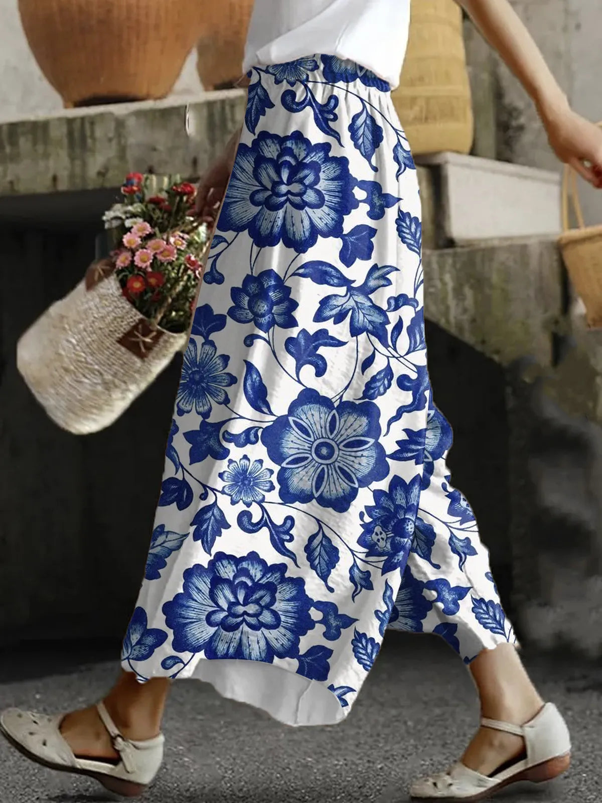 Bezaubern Sie mit der "Blaumoment EleganzHose", die mit ihrem kobaltblauen Blumenmuster auf reinweißem Stoff an klassische Porzellankunst erinnert. Diese Hose verspricht durch ihren leichten und luftigen Stoff hervorragenden Tragekomfort und verleiht durch den weiten Schnitt eine schmeichelnde Silhouette. Ideal für entspannte Tage oder als schickes Highlight für den Abend.