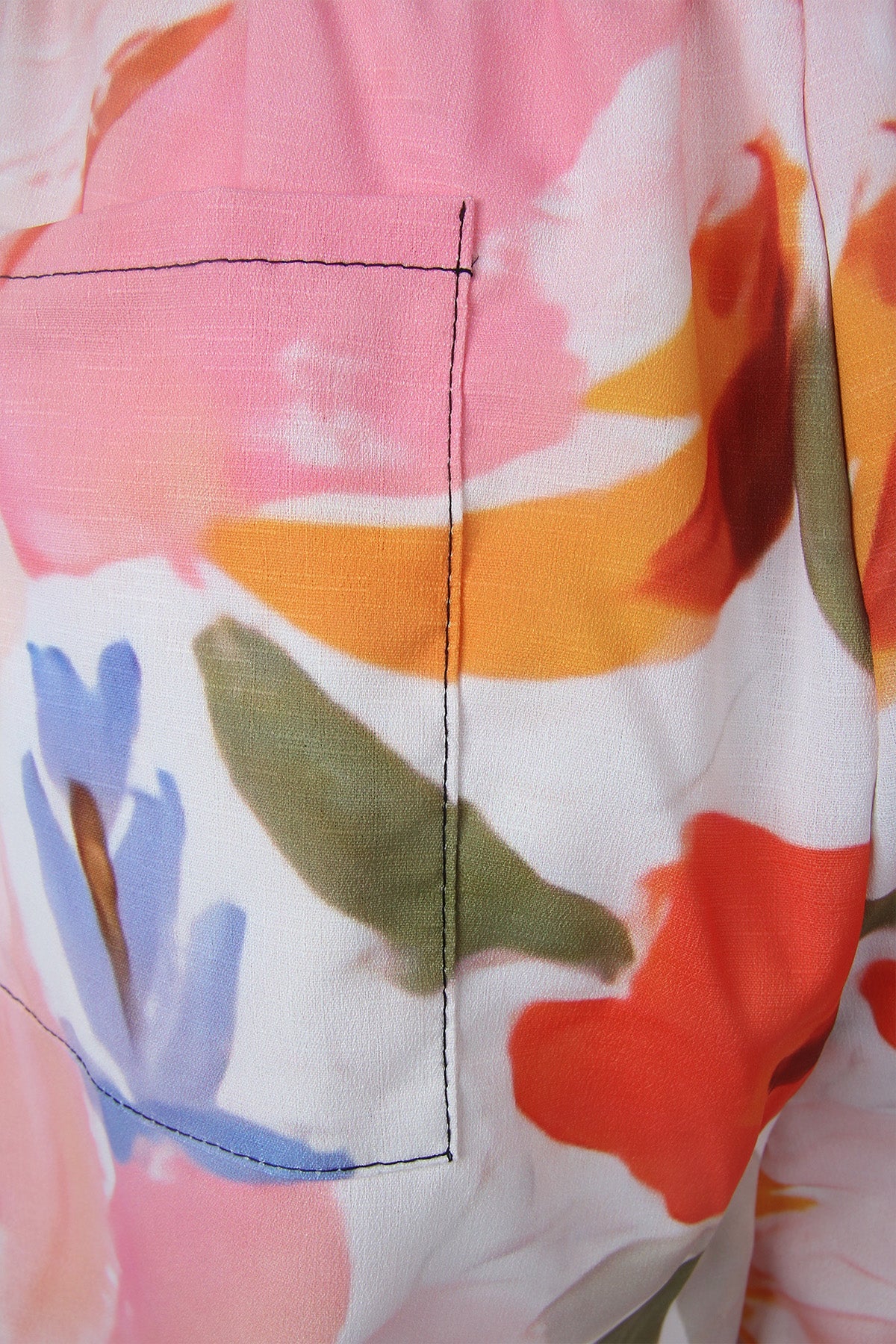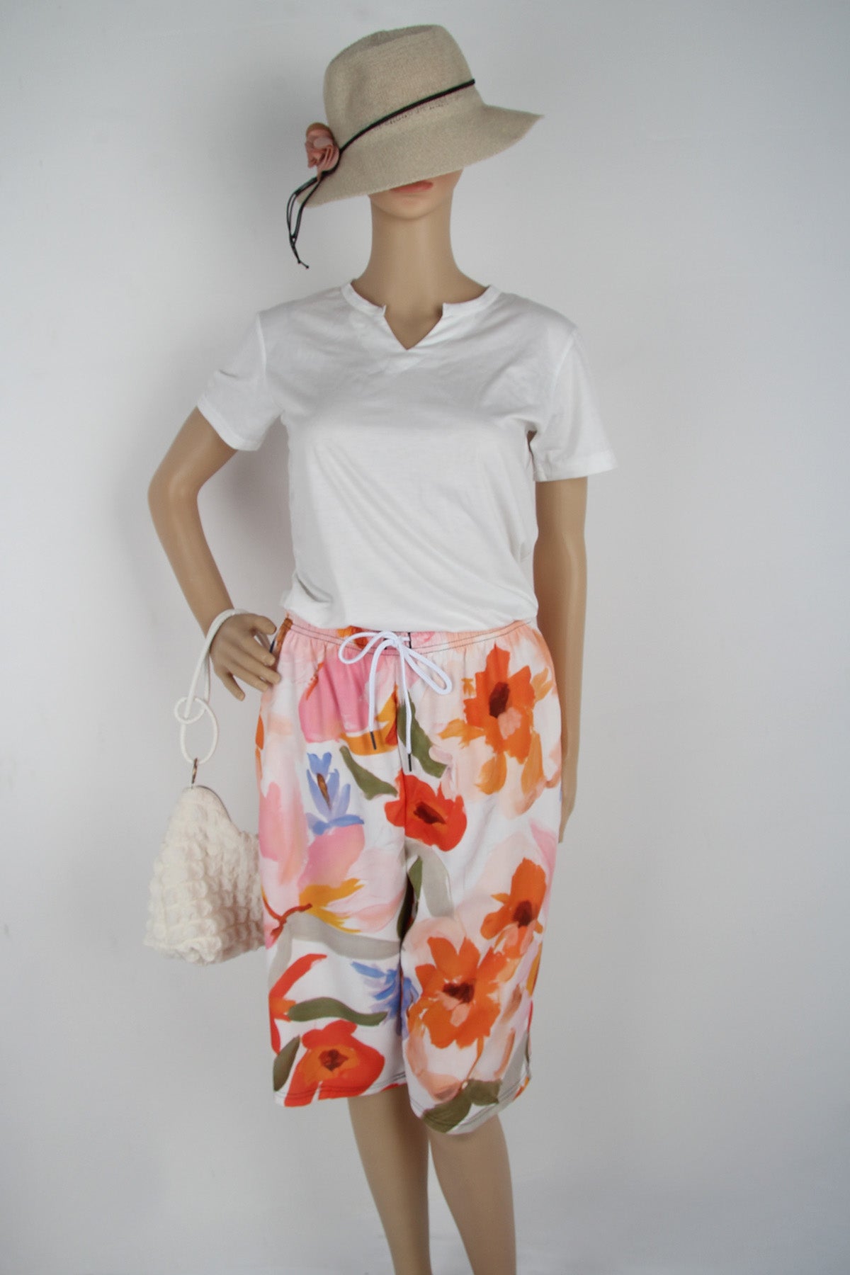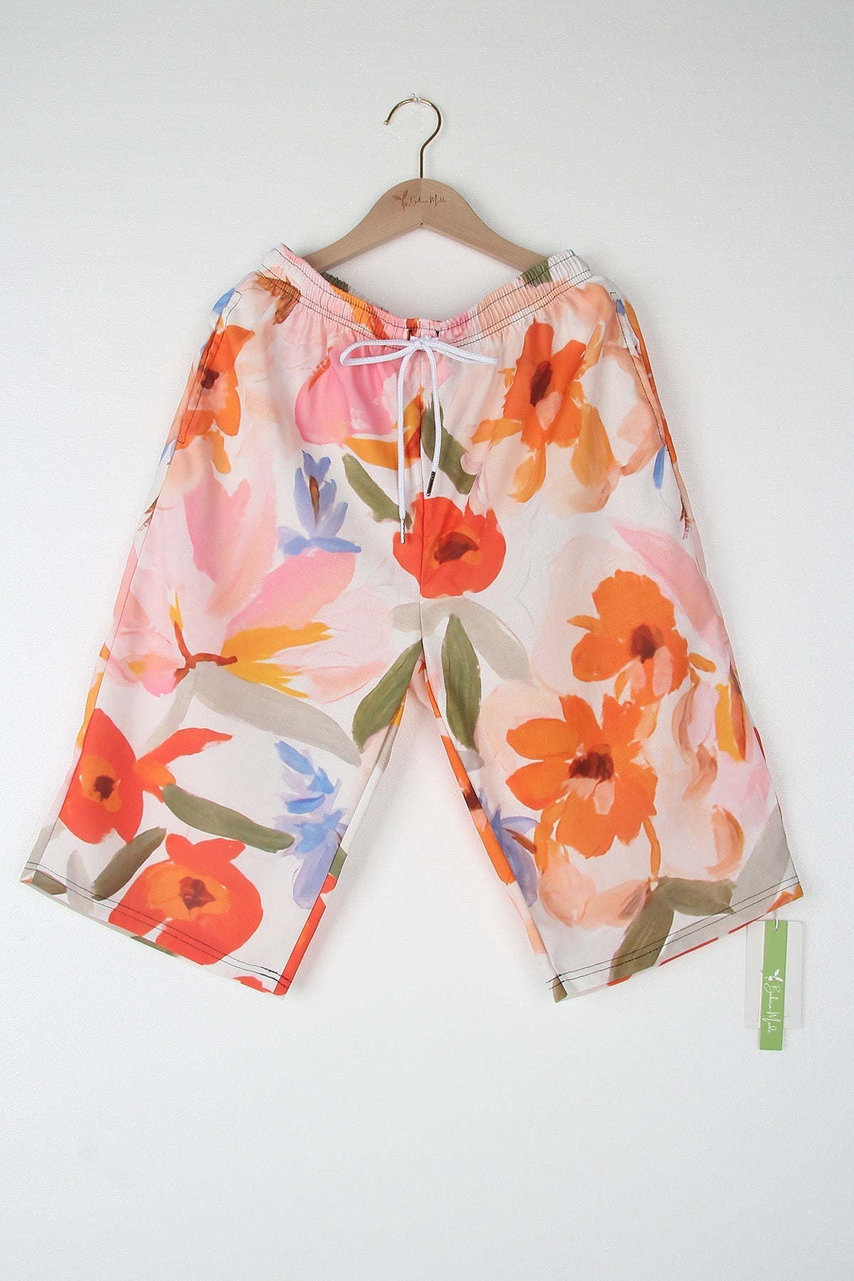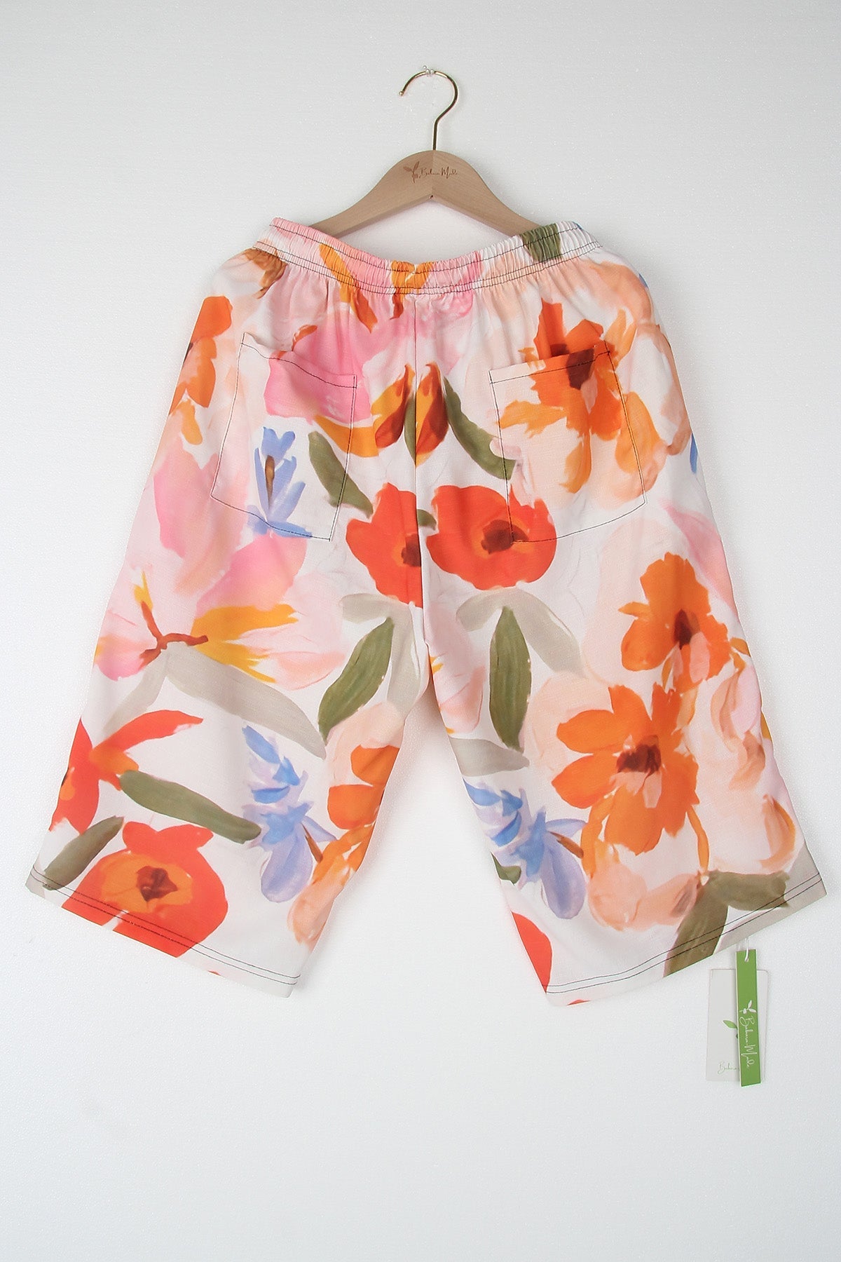Willkommen im "Blütenmeer Culotte" – Ihrem neuen Lieblingsstück für lebendige Sommertage. Diese halblange Hose zeichnet sich durch ihr üppiges, farbenfrohes Blumenmuster aus, das sofort gute Laune verbreitet. Der weiche und luftige Stoff bietet ein angenehmes Tragegefühl, ideal für warmes Wetter. Der elastische Bund und die legeren Schnittführung garantieren Komfort und Stil in einem, während Sie mit jedem Schritt einen Hauch von sommerlicher Eleganz versprühen.