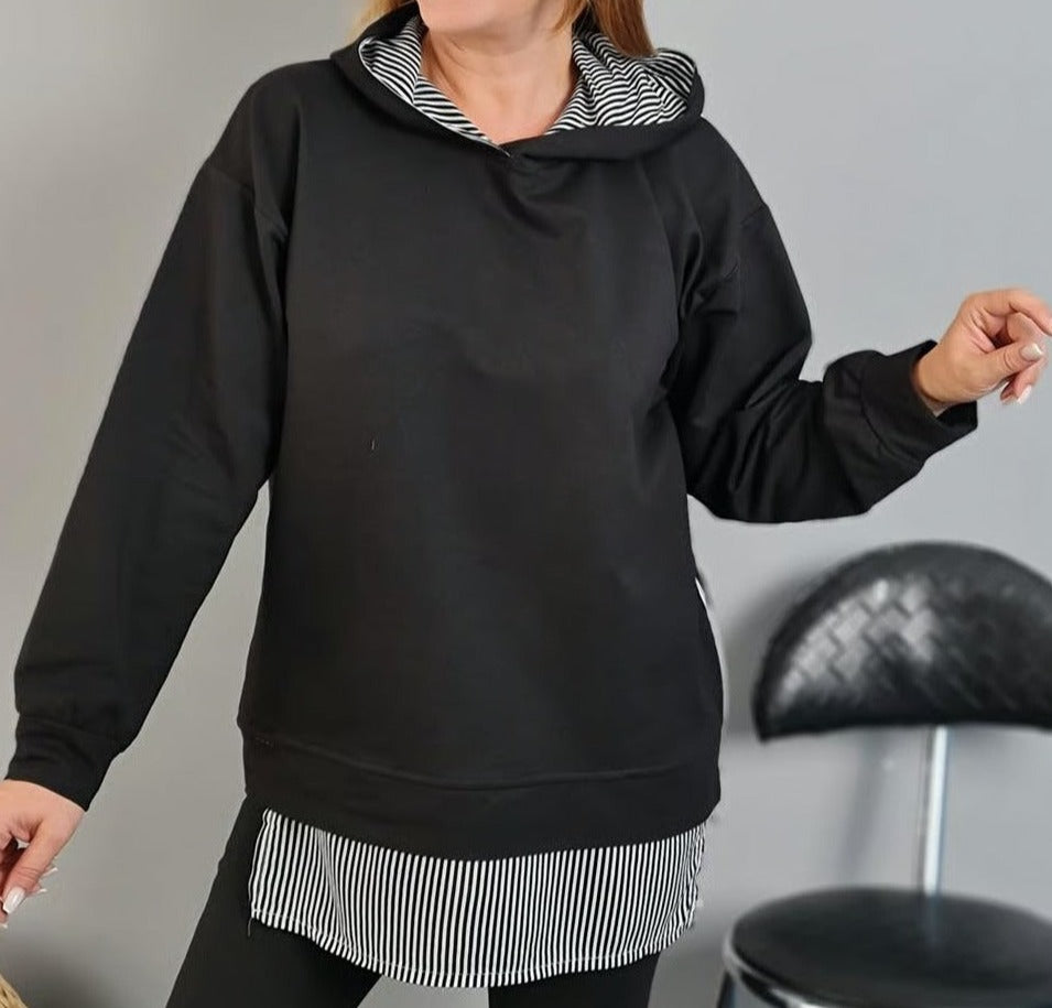 Ist es nicht herrlich, wenn Komfort auf Stil trifft? Dieser schicke Hoodie mit dem überraschenden Streifenakzent am Saum ist genau das, was Ihrem Alltagslook das gewisse Etwas verleiht. Wünschen Sie sich nicht auch ein Kleidungsstück, das sowohl bequem als auch schick ist?