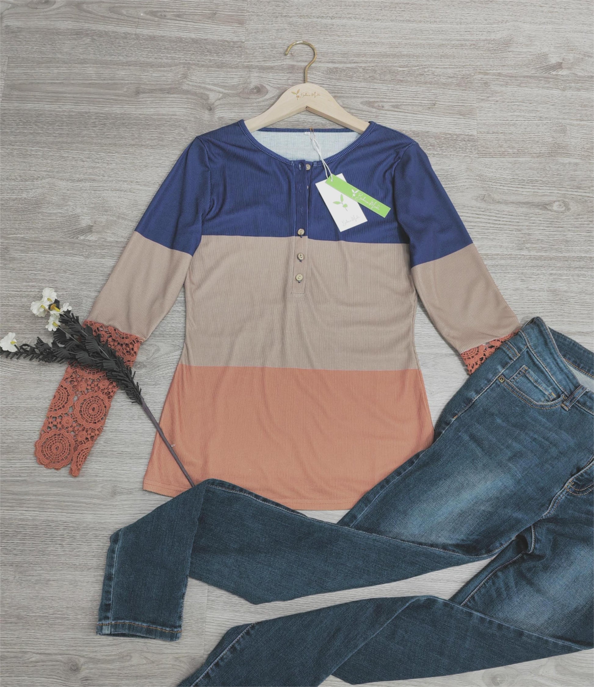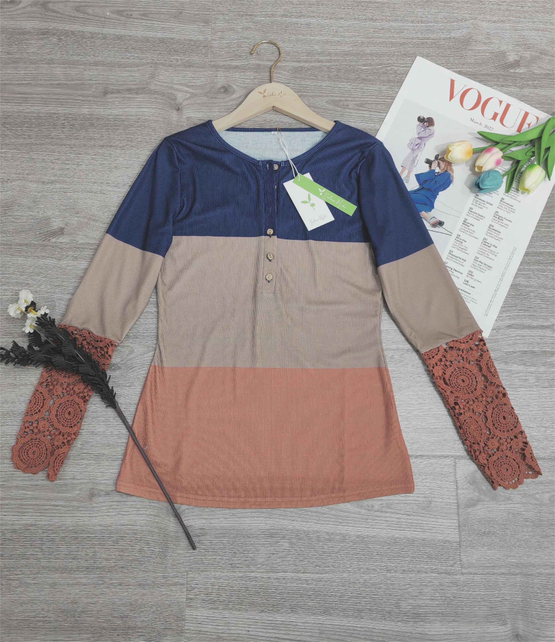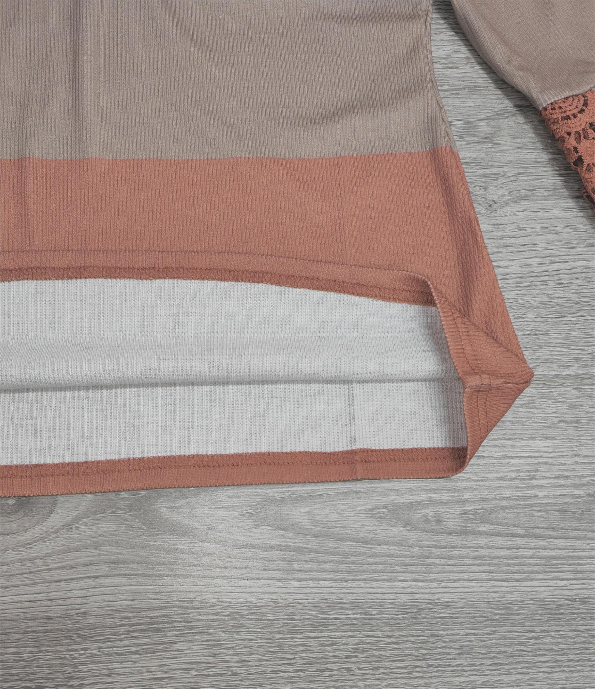 ChristStil® - Lace Hollow Out Spleißen Farbe Block Taste Bluse