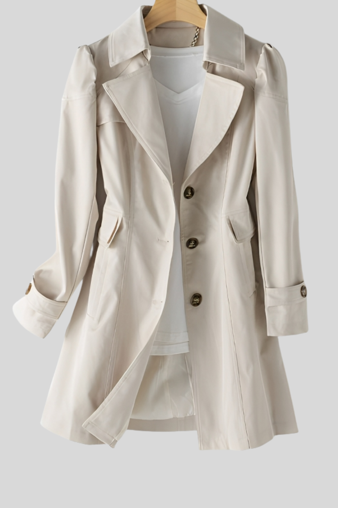 Der Coraline – Eleganter Trenchcoat mit Gürtel und Klappentaschen ist ein klassisches Kleidungsstück, das in keiner Garderobe fehlen sollte. Dieser Trenchcoat bietet ein elegantes Design, das sowohl für den Alltag als auch für besondere Anlässe geeignet ist. Mit einem modischen Gürtel kannst du die Silhouette nach Belieben betonen, während die praktischen Klappentaschen nützlichen Stauraum bieten. Der Trenchcoat lässt sich mühelos mit verschiedenen Outfits kombinieren und verleiht deinem Look eine raffinierte Note.