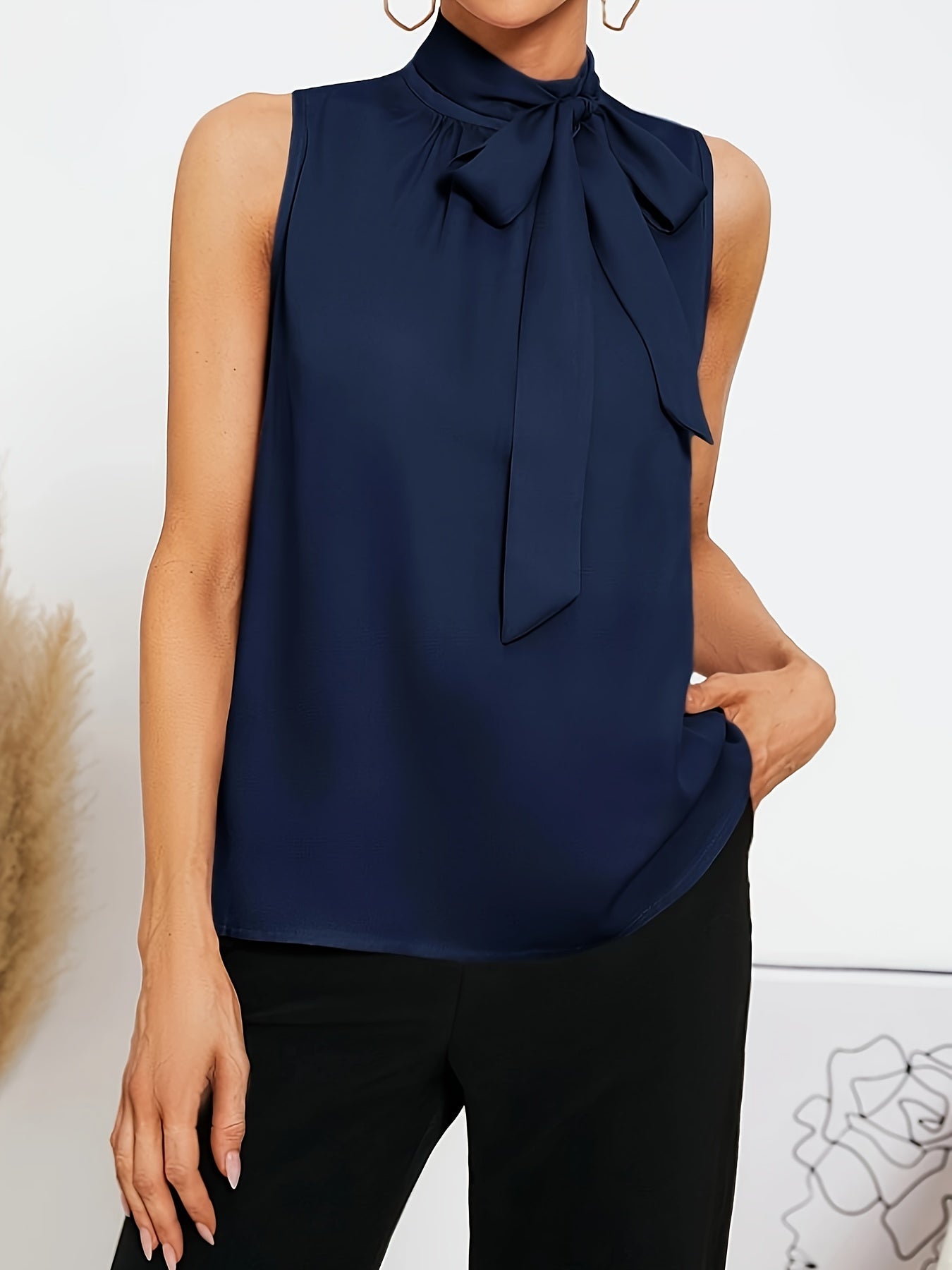 - Elegantes Design: Halsband mit Schleife und ärmelloser Schnitt.