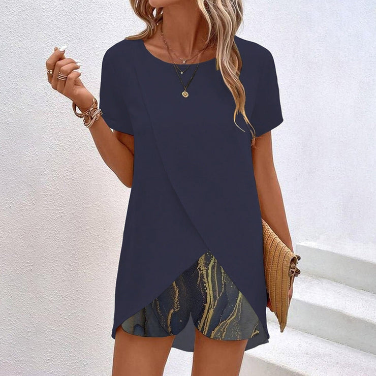 EcoExotica® - Atemberaubender Druck Rundhalsausschnitt Blau Zweiteiliges Set