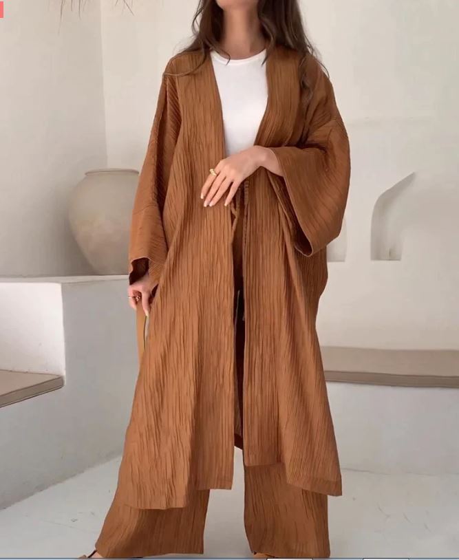 Strahlendes Design: Der "Eva - Walnut Ribbed Duster" besticht durch sein einzigartiges geripptes Design, das eine schmeichelnde Textur verleiht und gleichzeitig ein Gefühl von Luxus ausstrahlt. Seine offene Front betont Ihre darunter liegende.