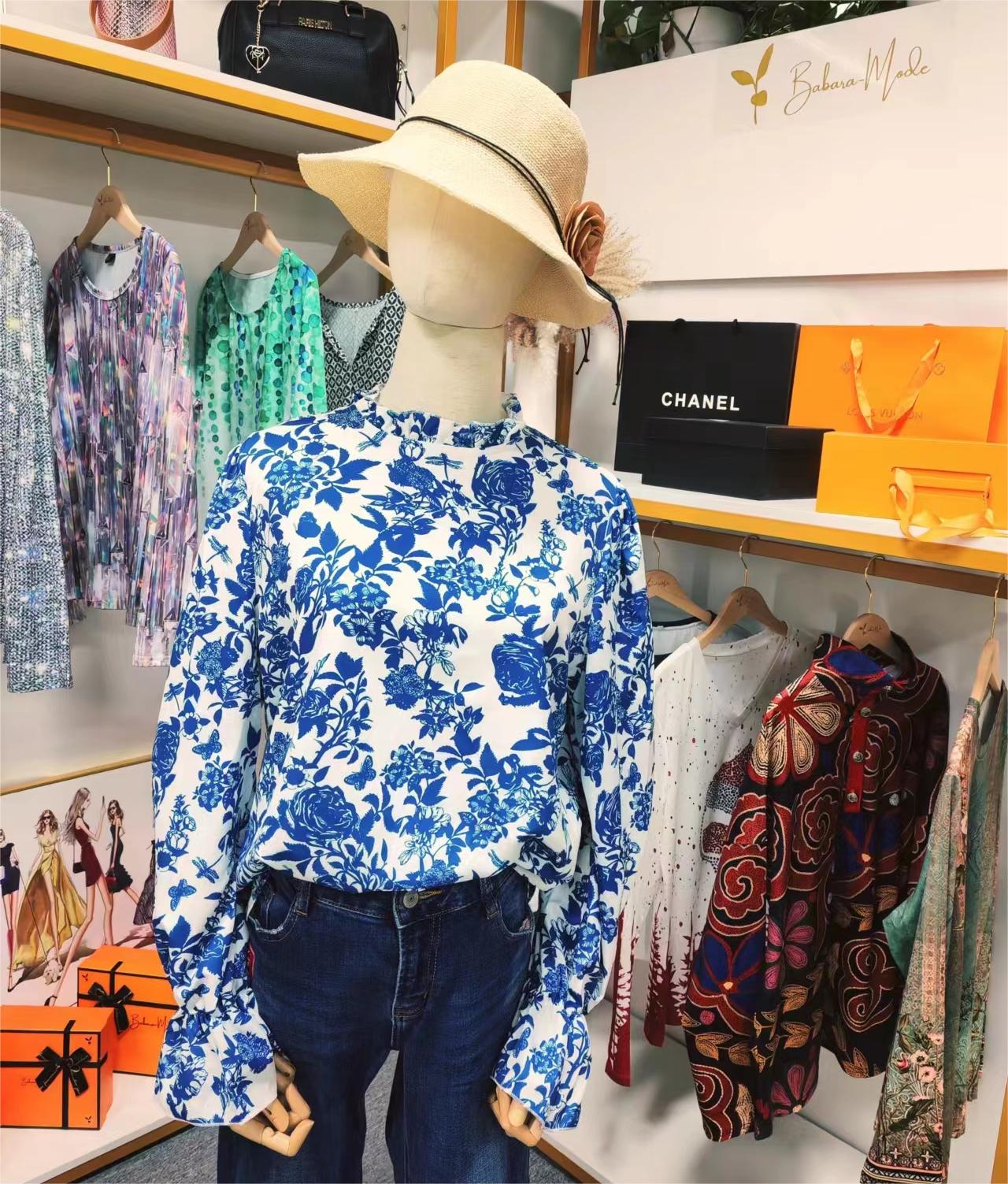 Even&Vil® - Sweet Plant Blaues langärmeliges Top