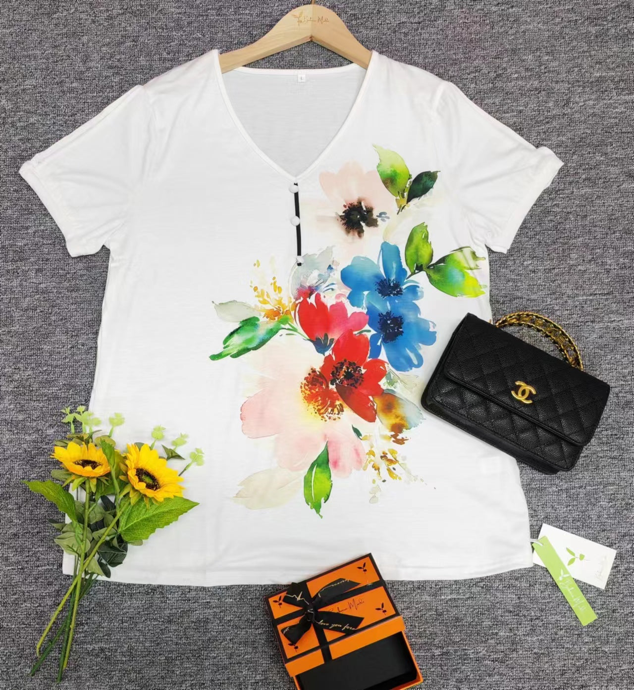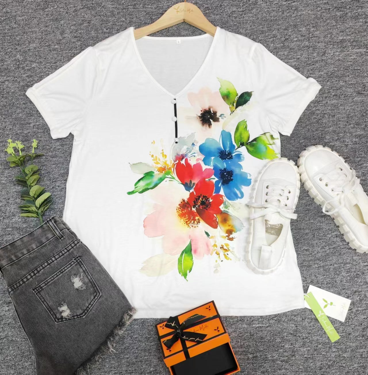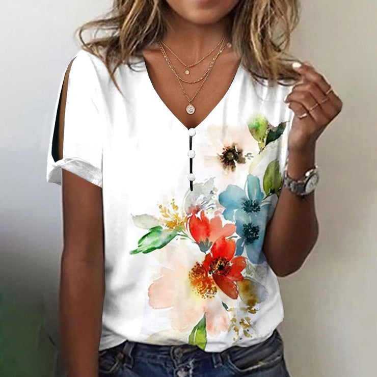 FallStil® - Romantisches kurzärmeliges Top mit Blumendruck