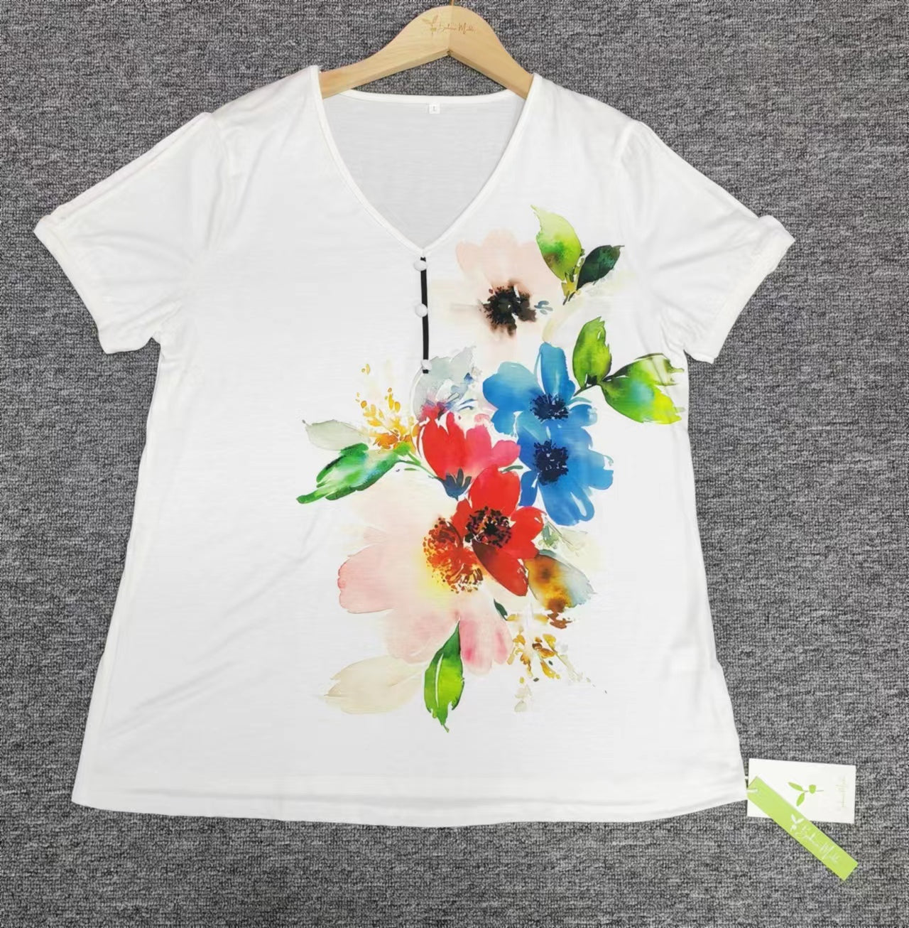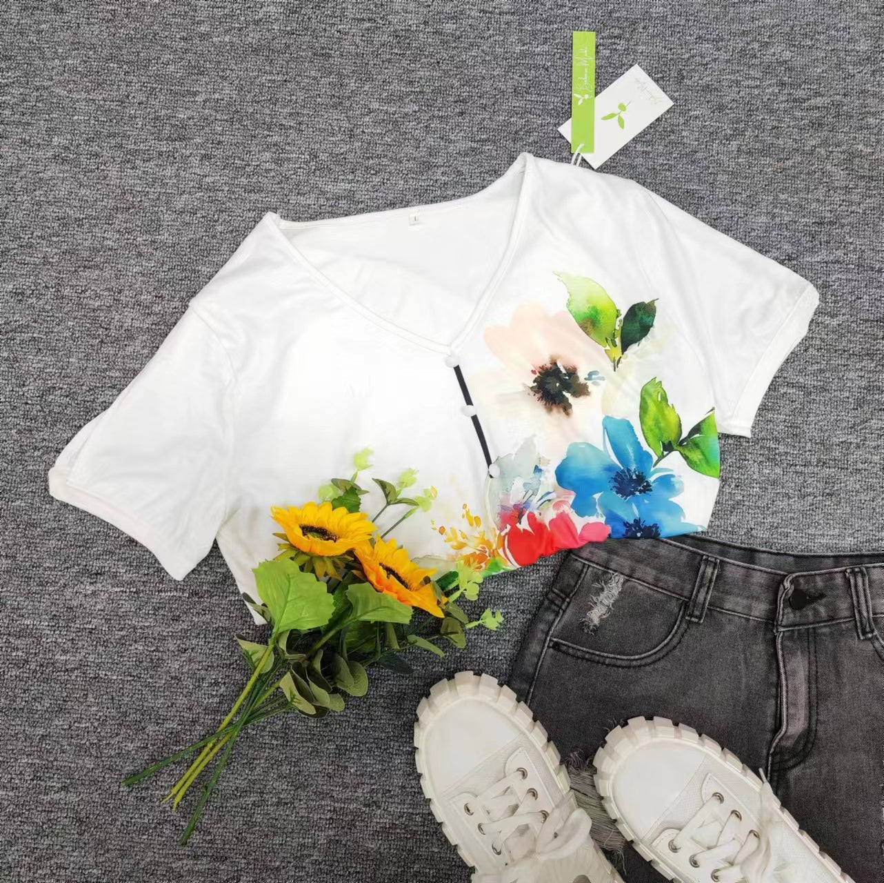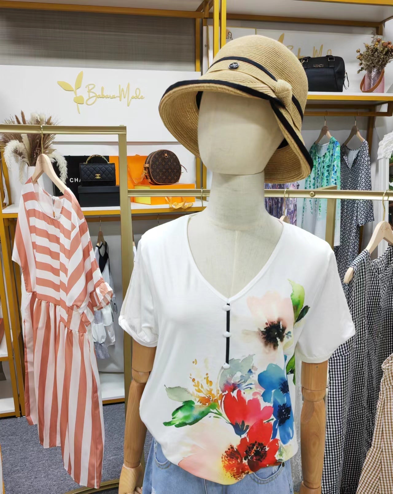 FallStil® - Romantisches kurzärmeliges Top mit Blumendruck