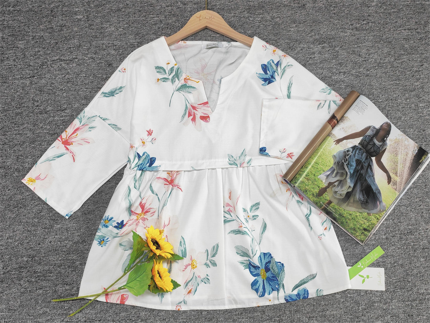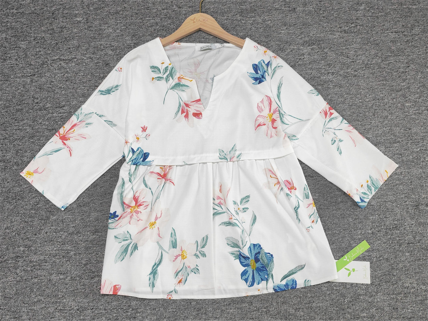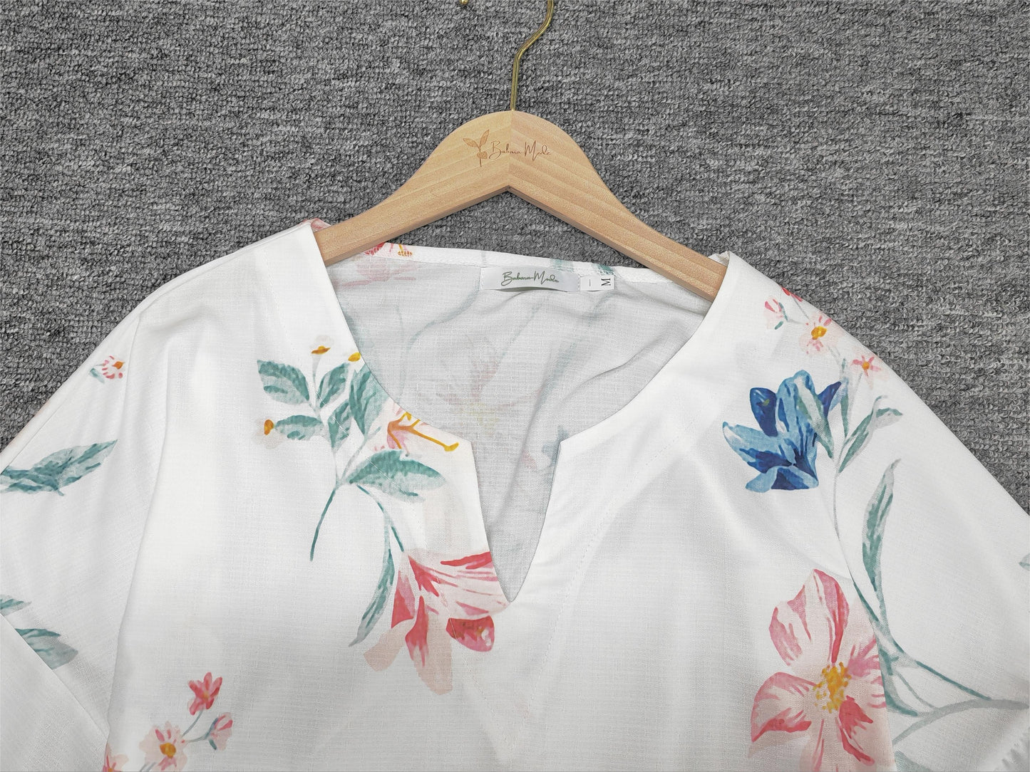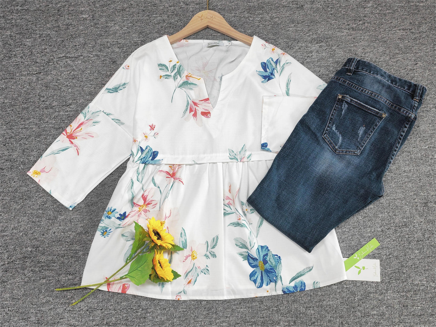 Entdecken Sie dieses bezaubernde, luftige Top in Weiß, das mit einem hinreißenden Blumenmuster-Druck und einem eleganten V-Ausschnitt aufwartet. Die 3/4 Ärmel verleihen dem Design eine zusätzliche Note von Raffinesse und Komfort. Perfekt für sonnige Tage und warme Sommerabende, sorgt der modische Schnitt für einen stilvollen Look, während die hochwertigen Materialien ein angenehmes Tragegefühl garantieren.