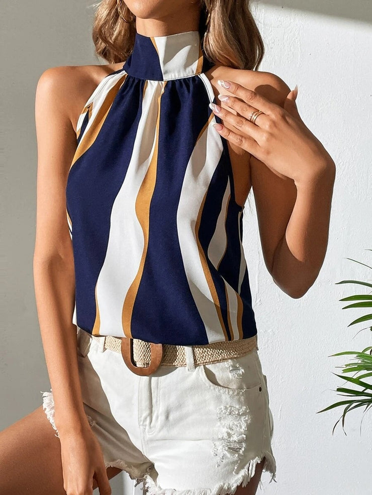 Präsentieren wir Ihnen ein bezauberndes ärmelloses Trägertop in einem faszinierenden Marineblau-Weiß-Orange Design, das sofort ins Auge fällt und modisches Flair versprüht. Dieses außergewöhnliche Top ist die ideale Ergänzung für Ihre Garderobe und verbindet Stil und Komfort auf höchstem Niveau. Ob in der Freizeit, bei einer Stadttour oder im Büro – dieses Top ist der perfekte Begleiter für jede Gelegenheit und hinterlässt immer einen bleibenden Eindruck.