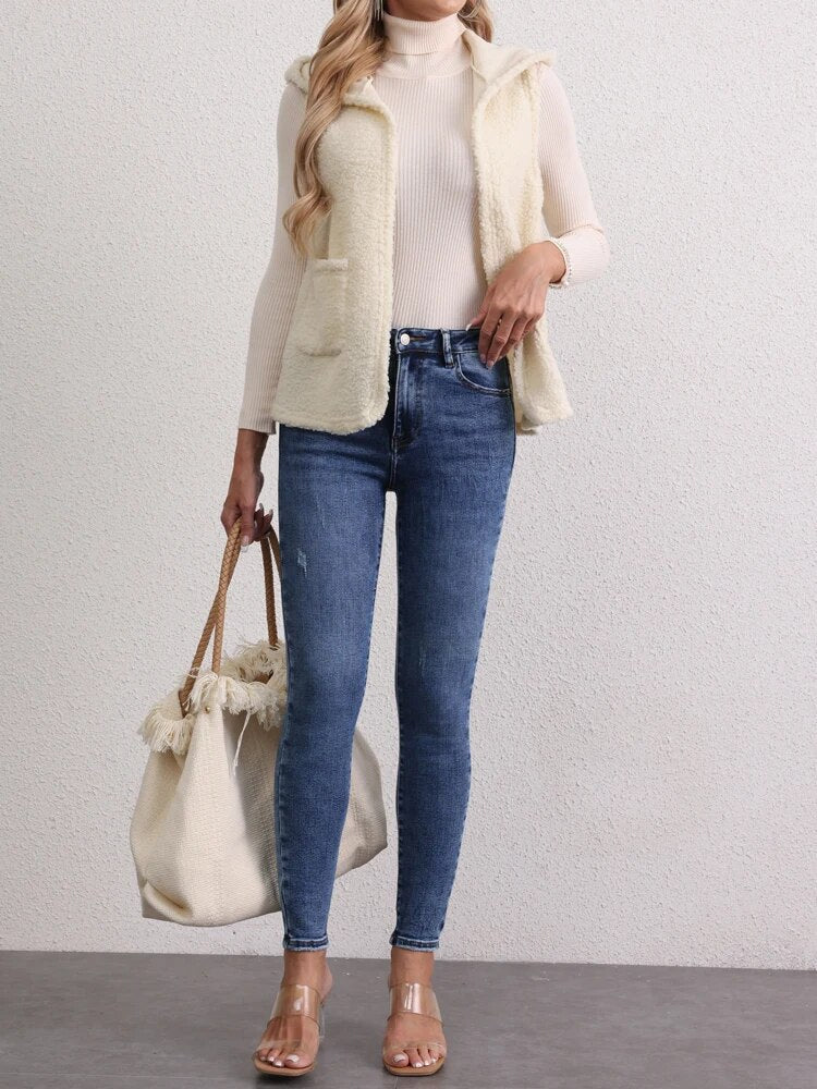 Mit unserer weißen Wollweste verleihen Sie Ihrem Sommerstil eine Note Raffinesse. Gönnen Sie sich dieses zeitlose Kleidungsstück und genießen Sie Komfort und Klasse, egal wohin Sie gehen.